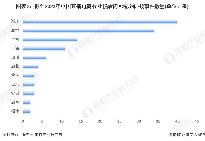 3、直播电商行业投融资以浙江、北京为集聚