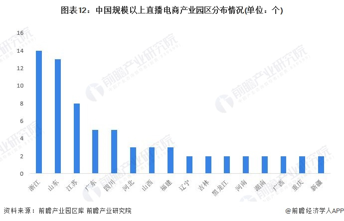 目前,我国针对直播电商设立的产业园较多,我国规模以上的直播电商产业园区共有74个,主要分布在浙江、山东、江苏等地,其中浙江共有14个。