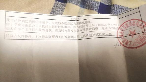 驾校承诺退还刘先生2926元