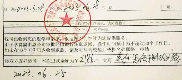 星元驾校承诺退款2786元