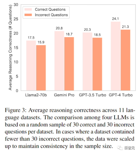 图3显示,GPT-4 Turbo在正确和错误的答案上,都显示出先进的推理机制,即使最终答案不准确,它也有保持逻辑连贯的能力。