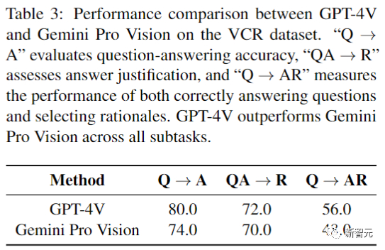 考虑到API成本和速率的限制,研究人员从每个基于语言的数据集的验证集中随机选择了200个示例,从VCR数据集的验证集中随机选择了50个示例。