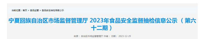 宁夏回族自治区市场监督管理厅2023年食品安全监督抽检信息公示 (第六十二期)
