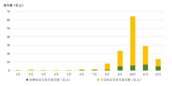 从成交金额看,2023年全国碳市场碳排放配额年度成交额为144.44亿元。其中,挂牌协议交易成交额25.69亿元,大宗协议交易成交额118.75亿元。