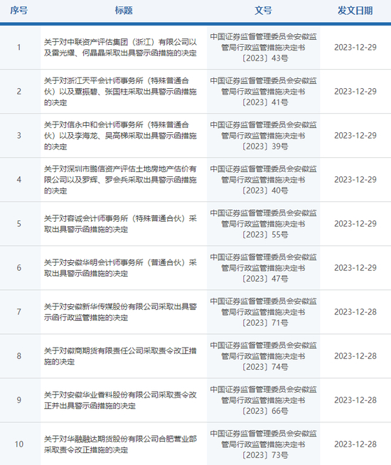 节前,安徽证监局连更多则监管处罚函。单是12月25日,就有两份针对辖区期货机构的罚单。
