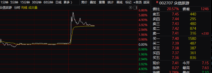 在此消息发布之后,旅游股午后出现直线拉升行情。