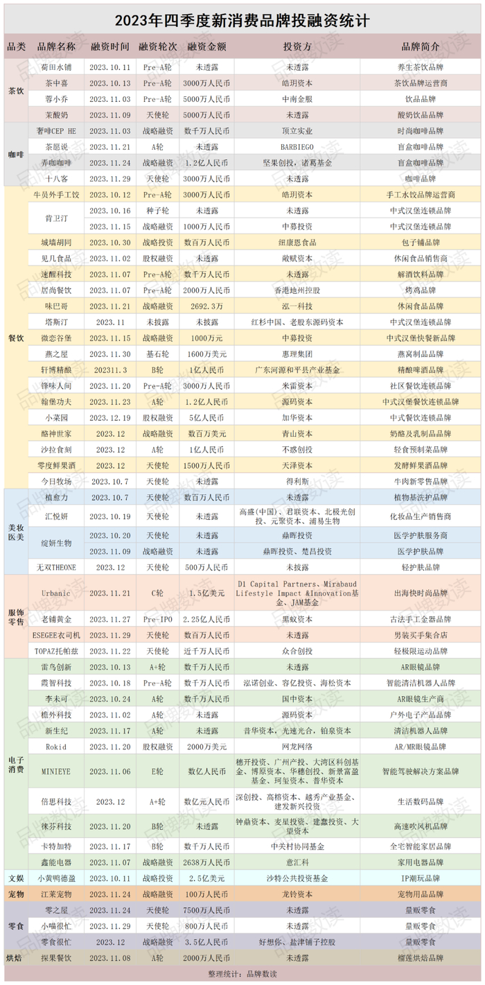 以下为四季度新消费投融资名单: