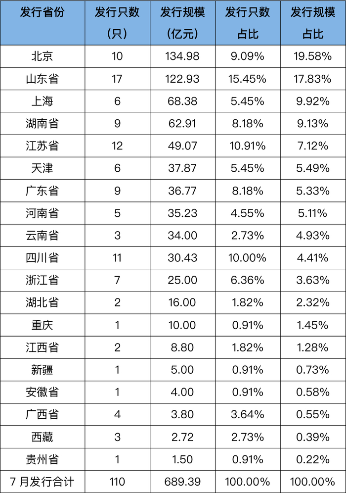 债券发行地区:“从绿色债券发行地区来看,2023年7月,发行规模排名前三的地区分别为北京、山东省和上海,发行规模分别为134.98亿元、122.93亿元和68.38亿元。