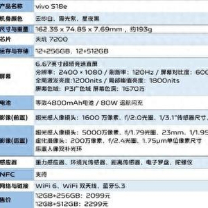 按照惯例,咱们还是先看看vivo S18e的具体配置: