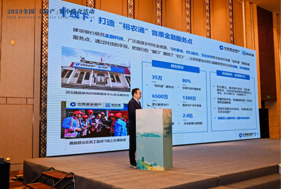 活动现场,中国建设银行总行乡村振兴金融部副总经理严俊作主旨报告,系统介绍了建设银行深入开展新金融实践,致力于实现信息汇合、要素融合、服务综合,构建起了独具特色、有辨识度的“裕农服务”,形成了涵盖产品、平台、场景、客户的“乡村金融生态圈”,发挥了国有大型银行在服务乡村振兴中的“头雁”作用。