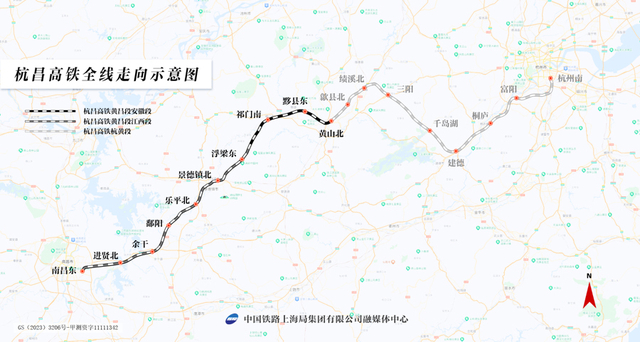 杭昌高铁起自杭州南站,途经浙江省杭州市,安徽省宣城市、黄山市,江西省景德镇市、上饶市、南昌市,接入南昌东站,线路全长560公里,其中杭昌高铁杭黄段已于2018年12月25日开通运营。本次建成通车的杭昌高铁黄昌段,全长288公里,设计时速350公里,全线共设黄山北、黟县东、祁门南、景德镇北、南昌东等10座车站。