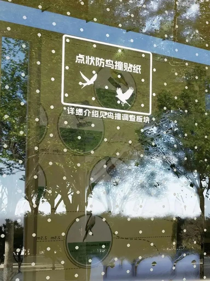 值得一提的是,园内的生态科普馆采用鸟类友好建筑设计,玻璃上使用点状防鸟撞贴纸,减少玻璃的反光和透明度,将玻璃与外界区分开来,让鸟类“看见”建筑上玻璃,从而避免鸟类与建筑物的碰撞,飞羽精灵们可以在园内更自在地飞翔。