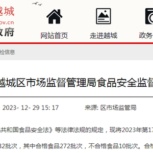 绍兴市越城区市场监督管理局食品安全监督抽检信息公告(2023年第17期)