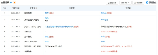 根据天眼查资料显示,2023年12月27日,大连万达商管退出上海金山万达广场投资有限公司(以下简称“上海金山万达”)股东名单,新股东为苏州联商贰号商业管理有限公司(以下简称“苏州联商贰号”)。