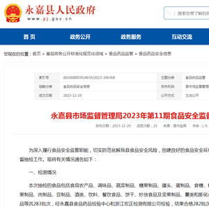 永嘉县市场监督管理局2023年第11期食品安全监督抽检情况的通告