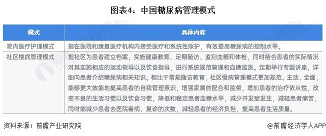 中国糖尿病管理模式主要有院内医疗护理以及社区慢病管理模式等,具体如下: