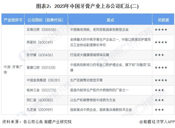 牙膏产业上市公司汇总