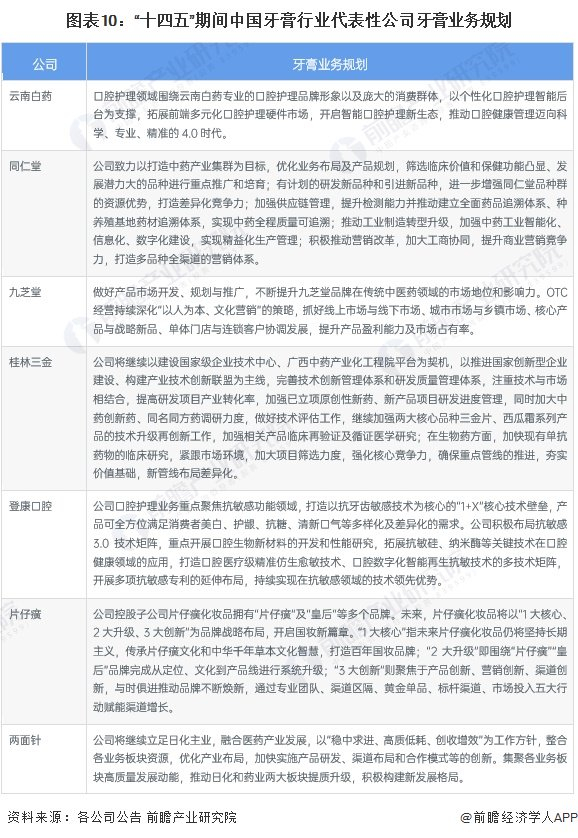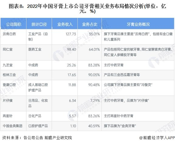 牙膏行业上市公司牙膏业务规划对比