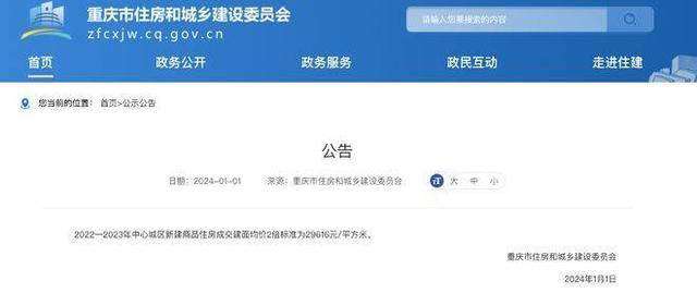 2022—2023年,重庆中心城区新建商品住房成交建面均价2倍标准为29616元/平方米。