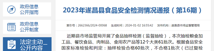 2023年遂昌县食品安全检测情况通报(第16期)