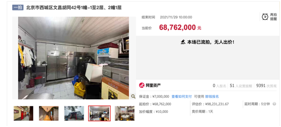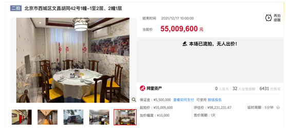 文昌胡同房产前第三次流拍 来源:阿里法拍