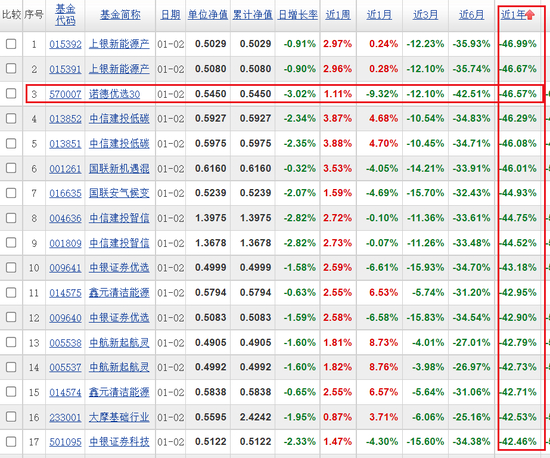 诺德优选30夺冠!公募基金跌幅排行榜!