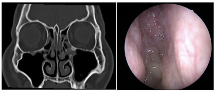 于是,阿云来到医院寻求帮助。刘教授详细询问了病情。阿云平时并没有鼻塞、流涕、头痛等症状,嗅觉问题近两年组建加重,偶尔能闻见一点气味。她并没有明确的外伤或上呼吸道感染史。体检中,并无发现鼻腔内有明显的异常,但嗅觉检测显示阿云的嗅觉中度损失。在其后的鼻内镜检查中,有了重要发现——在双侧鼻腔的最上部,也就是嗅裂区域,发现了息肉!刘教授告诉她,鼻息肉可能是导致她嗅觉下降的最大元凶。
