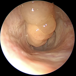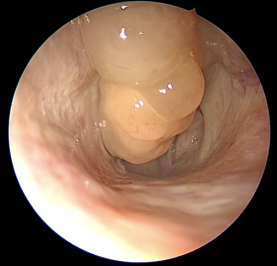 经检查,赖婶的耳膜略有内陷,虽然她中耳压力监测(声导抗检查)显示正常,然而,赖婶反馈,每次做这个检查后,症状会有所缓解。为了进一步诊断,刘教授为赖婶进行了电子鼻咽镜检查。结果显示,赖婶的鼻腔内存在较多鼻息肉,部分鼻息肉甚至突向鼻咽部,并伴有脓性分泌物,鼻窦CT扫描则提示存在双侧全组鼻窦炎。综合以上检查结果,刘教授诊断赖婶患有双侧咽鼓管功能紊乱,双慢性鼻-鼻窦炎伴鼻息肉。