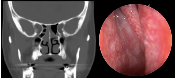 通过鼻内镜检查,刘教授观察到,陈先生上呼吸道双侧鼻腔中鼻道、嗅裂有鼻息肉,软腭平面和舌根平面没有明显狭窄。同时,鼻窦CT显示,陈先生患有双侧鼻窦炎。