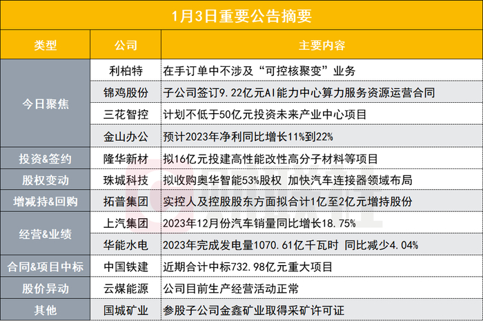 在手订单中不涉及可控核聚变业务 3连板核电概念股发布股票交易风险提示公告|盘后公告集锦