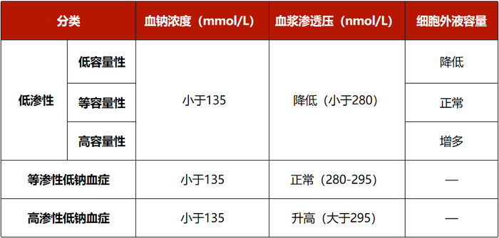 按照血浆渗透压进行病因分类,可从假性低钠血症,渗透压调定点重置,低渗、高渗及等渗性低钠血症等方面考虑。