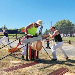 2022年11月9日,在新西兰南岛克赖斯特彻奇,人们在坎特伯雷农业展上参加锯木头大赛