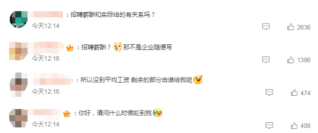 针对该报告中的招聘薪酬,在社交媒体上,有网友,“请问什么时候轮到我。”