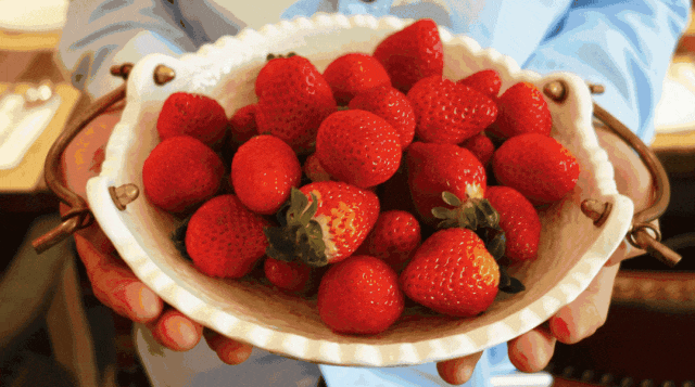 草莓并非越大越好吃,比鹌鹑蛋大一点、表面的种子呈金黄色且分布平均的草莓口感好。