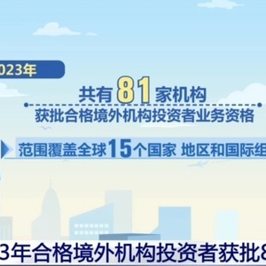 数据显示,2023年1—11月,已有75家机构获批合格境外机构投资者业务许可。2023年12月,又有6家机构的资格获证监会批准。2023年,共有81家机构获批合格境外机构投资者业务资格,范围覆盖全球15个国家、地区和国际组织。
