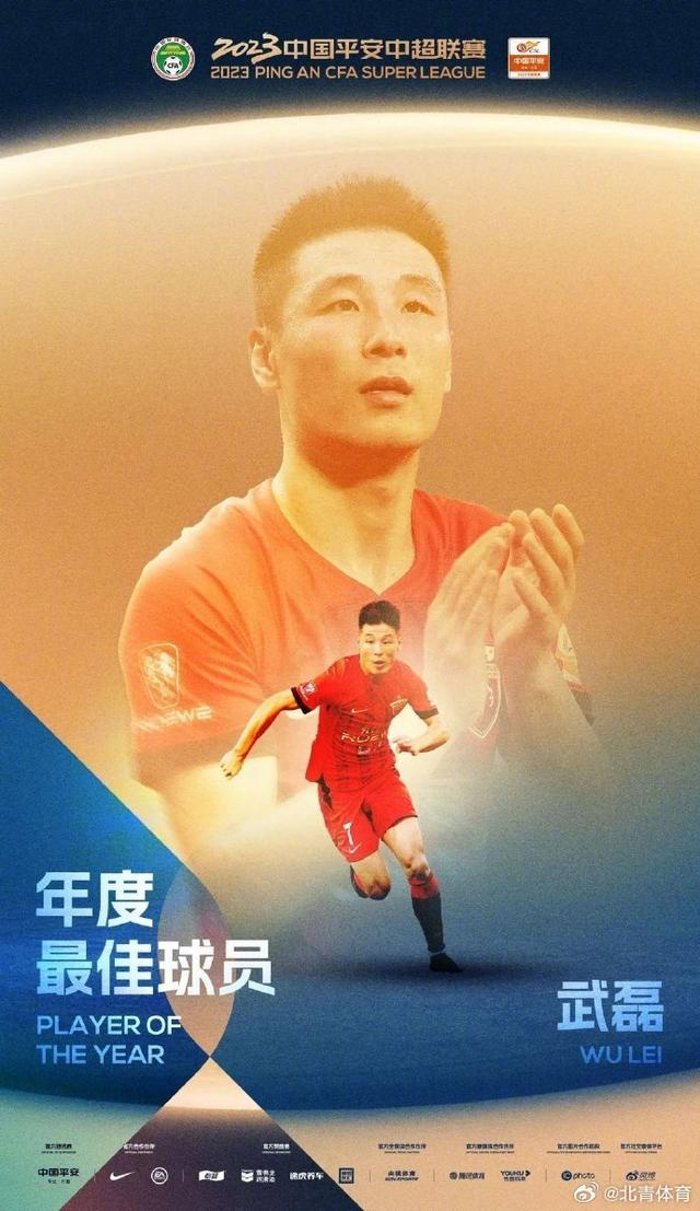1月4日上午,中超联赛组委会通过官方渠道公布了2023赛季中国平安中超联赛年度奖项评选结果。效力于当季联赛冠军上海上港队的国脚武磊当选年度最佳球员、浙江队外援莱昂纳多当选年度最佳射手、山东泰山队韩国籍主帅崔康熙当选年度最佳教练员、泰山队国脚门将王大雷当选年度最佳守门员、来自深圳队的夏合扎提·吾加合买提当选年度最佳青年球员。国际级裁判员马宁当选“金哨”。