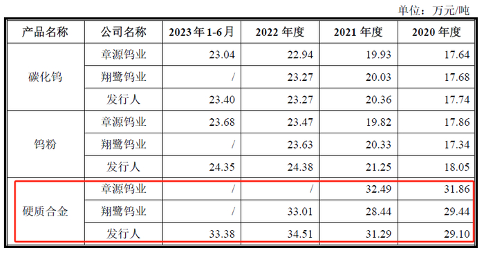具体到产品,不仅收入最高的碳化钨毛利率低于可比公司,被发行人视为未来利润成长点的硬质合金毛利率同样不及同行。