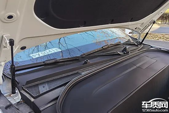 机舱盖的开启开关位置位于驾驶席前部左下方,开启机舱盖时需要拉动两次拉手,随后到车外将前机盖上掀即可。开启后发现,该车配备了双液压杆,整体启闭较为轻松,支撑性良好。