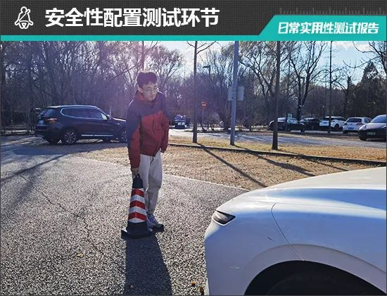 在测试前方视野环节,我们采用高70cm的桩桶作为参照物,随后调整车距,直至在主驾驶位可以看到桩桶上沿。经过测试,桩桶与车头最终测得的数据为1.5m,在测试过的同级别车型中处于上游水平。
