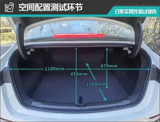 2023款荣威D7 EV的后备厢内部空间规整,且后排座椅放倒后,空间可进一步扩展,实用性表现出色。对于后备厢的基础数值,我们也进行了实测,开口宽度为1100mm;开口长度为450mm;后备厢进深为1200mm;后备厢地台与内部车顶的垂直高度为470mm。
