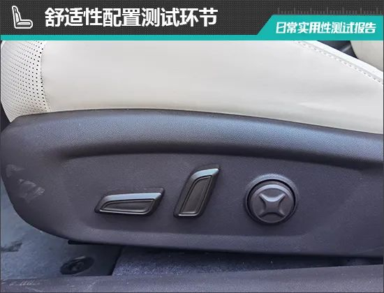 在座椅方面,测试车型的主驾驶座椅支持四组记忆功能。同时前排座椅支持加热功能,主驾驶座椅还支持通风功能,舒适性表现值得肯定。