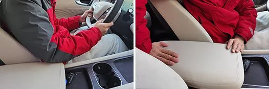 2023款荣威D7 EV的中央扶手采用了固定式设计,不支持位置调节,但由于面积宽大,在正常驾驶坐姿下,驾驶员手肘能够轻松倚靠在上面。