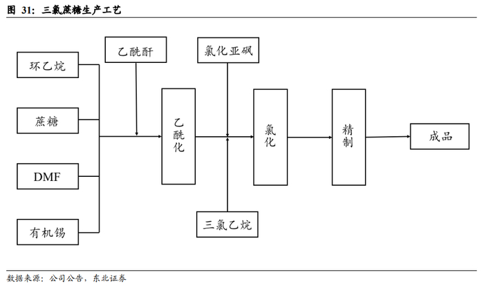 依托基础化工进行原料配套,打造核心产品成本护城河。公司拥有完整的核心产品原料配套,利用基础化工业务技术底蕴,自配三氯蔗糖原料氯化亚砜、DMF,安赛蜜原料双乙烯酮、三氧化硫,麦芽酚原料糠醛。氯化亚砜等原料均为价格波动较大的产品,公司原料实现自给,有力保障了三氯蔗糖等核心产品的原料供应安全,同时平抑原料价格波动对产品成本造成的影响,打造核心产品成本护城河。