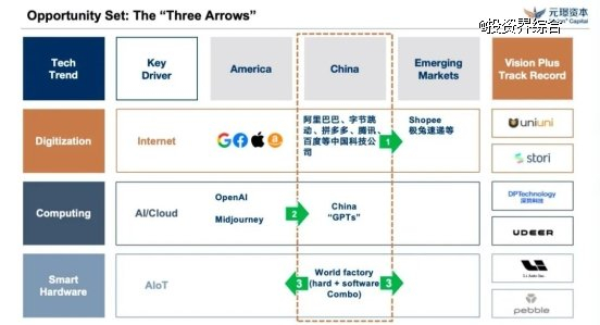 技术浪潮就像是引导投资的三个箭头,在纷繁复杂的全球化投资当中,为我们找到新机会的方向,在元璟资本2023美元投资人年会上,管理合伙人毅然详细讲述了元璟眼中三个箭头的含义: