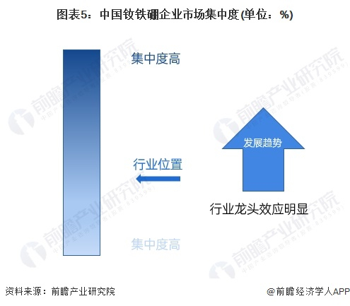 从企业集中度来看,钕铁硼行业企业数量一般,企业市场集中度较低。未来,随着行业发展的不断成熟,中国钕铁硼市场集中度仍将进一步提高。