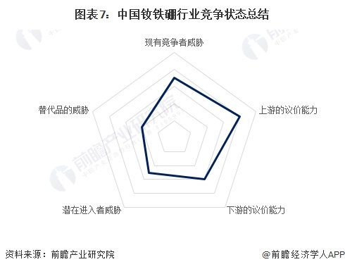 从五力竞争模型角度分析,目前,我国钕铁硼行业供给企业数量较少,行业毛利率一般,对潜在竞争者吸引力一般;上游稀土材料供应商具备较强的议价能力;在下游议价方面,部分大规模用户具有较强的议价能力。