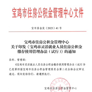 陕西宝鸡印发灵活就业人员住房公积金缴存使用管理办法,1月1日起施行