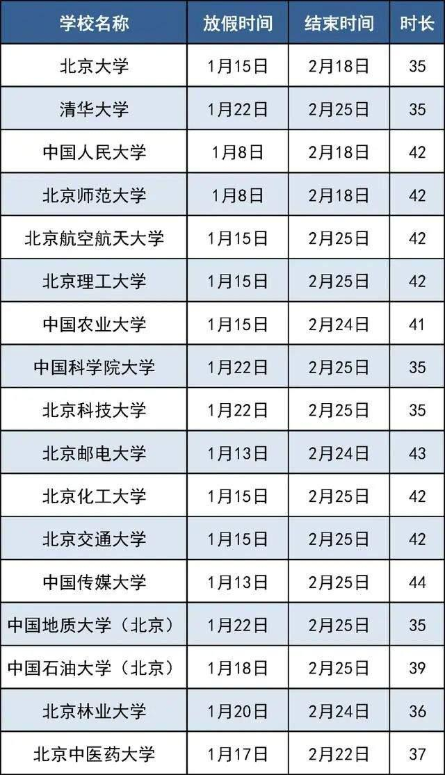 按照北京各高校校历显示,北京大学、清华大学、中国人民大学等近40所高校公布的放假安排中,最长的假期达48天。