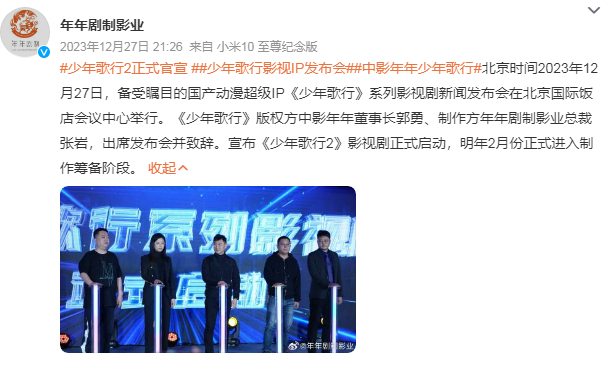 一石惊起千层浪,怎么有两个《少年歌行2》?怎么还有一个被作者打假了?到底谁在制作真正的《少年歌行2》?12月29日,年年剧制影业发布严正声明,称“拍摄制作《少年歌行》系列影视剧,系取得《少年歌行》小说权利人中影年年(北京)科技有限公司合法授权。”并公开相关的授权书。中影年年也发布严正声明,表示中影年年为《少年歌行》改编权、摄制权等权利的唯一合法权利人,系列影视剧为有效期内正当行使合法权益。