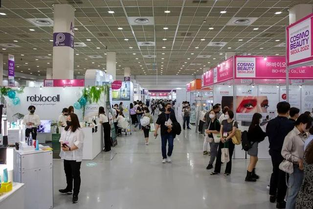 2022年5月27日,人们在韩国首尔参观首尔国际化妆品美容产业博览会。(新华社)
